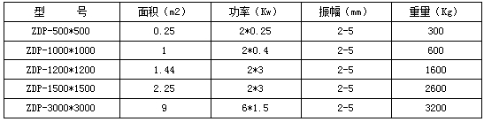 ZDP型振动平台于生产流程中用于把颗粒、粉状物料从散装到块状、形状等形式的转变。产品特点